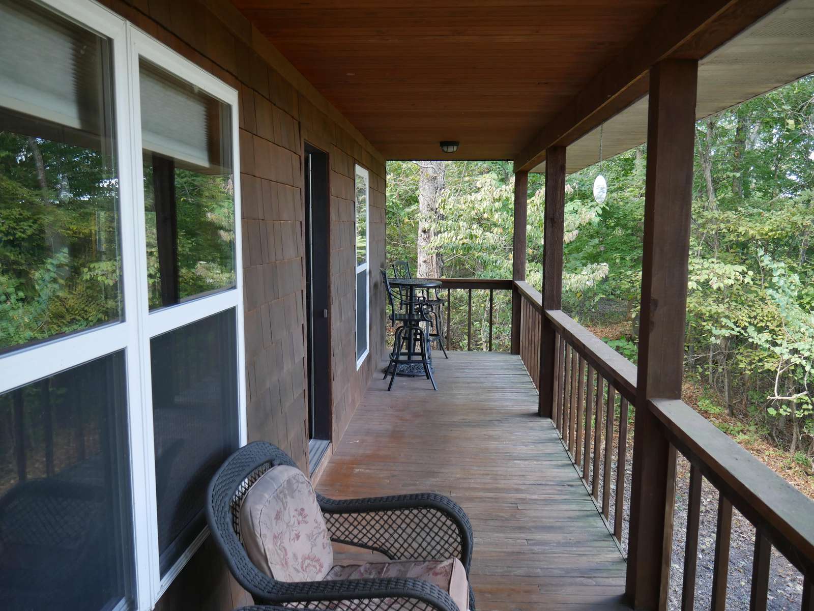 The back deck of Copperstone Cottage features plenty of space for lounging or dining alfresco in warmer temperatures. You’ll want to brew your morning mug of coffee and take it out here to watch the woods wake up around you. The hushed peace of the forest and the surrounding natural beauty are endlessly soothing.