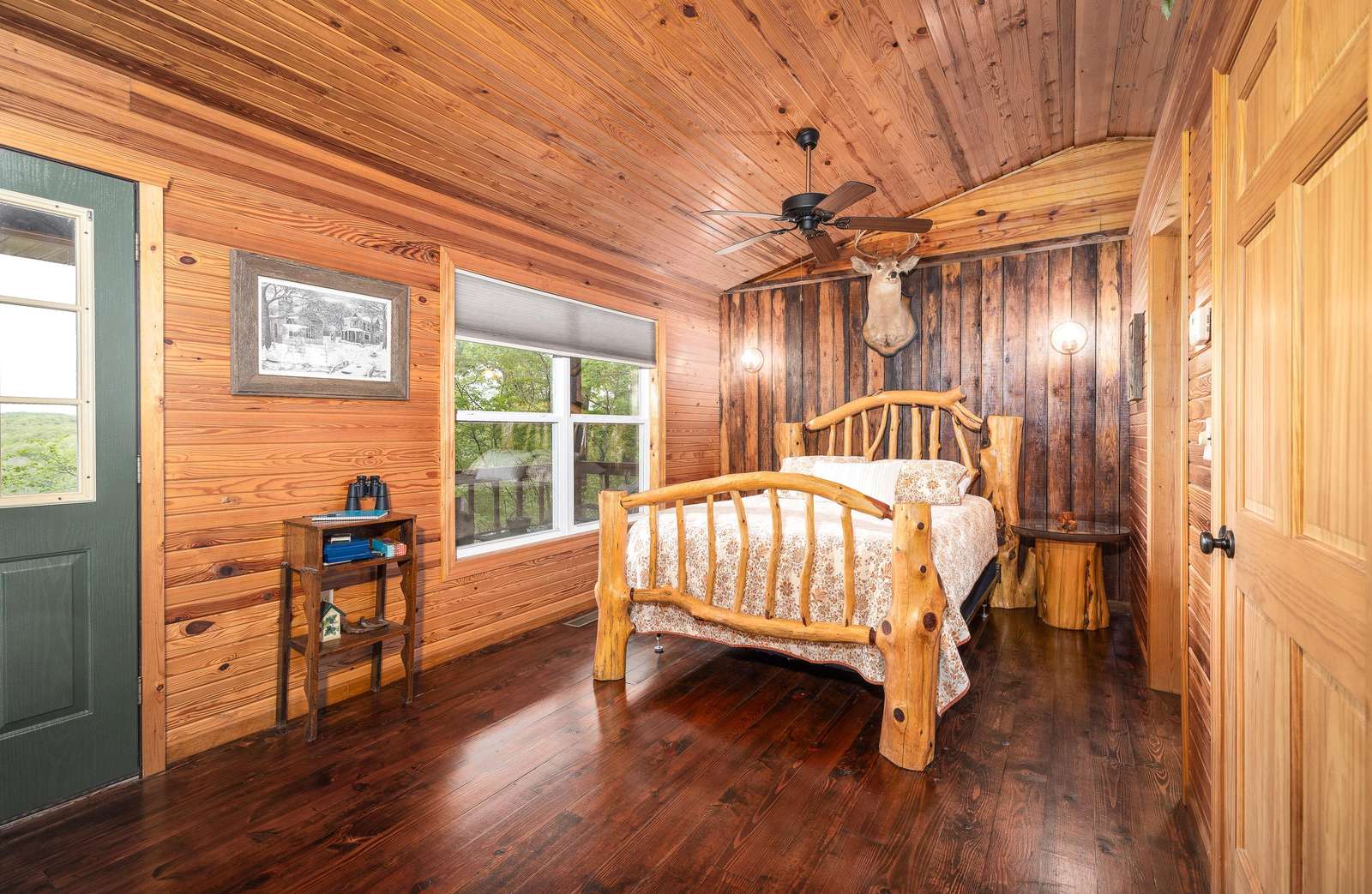 Like a woodland cottage from a fairytale, this romantic and charming one-room chalet is a sublime spot for your next mountain getaway. Complete with gas-burning fireplace, deep soaking tub, and a classic covered back porch with tranquil views of the surrounding forest, Copperstone Cottage is the perfect place to rest your head when you’re craving some peace and quiet in the Missouri Ozarks.