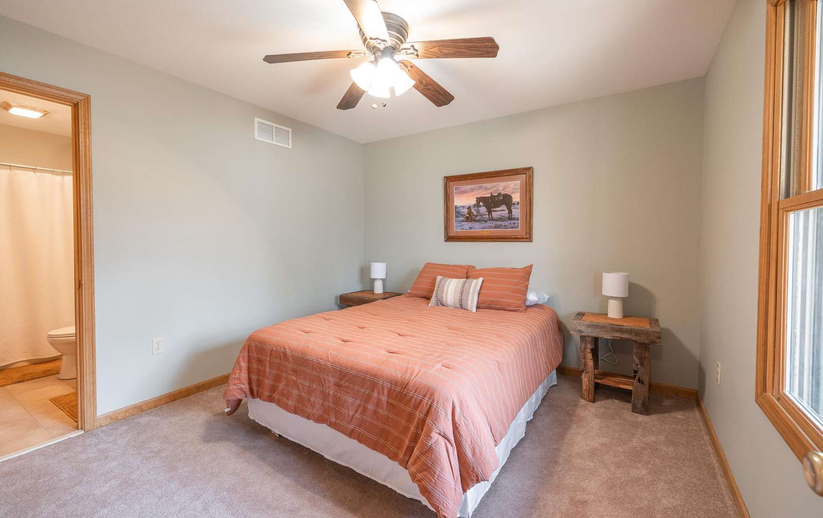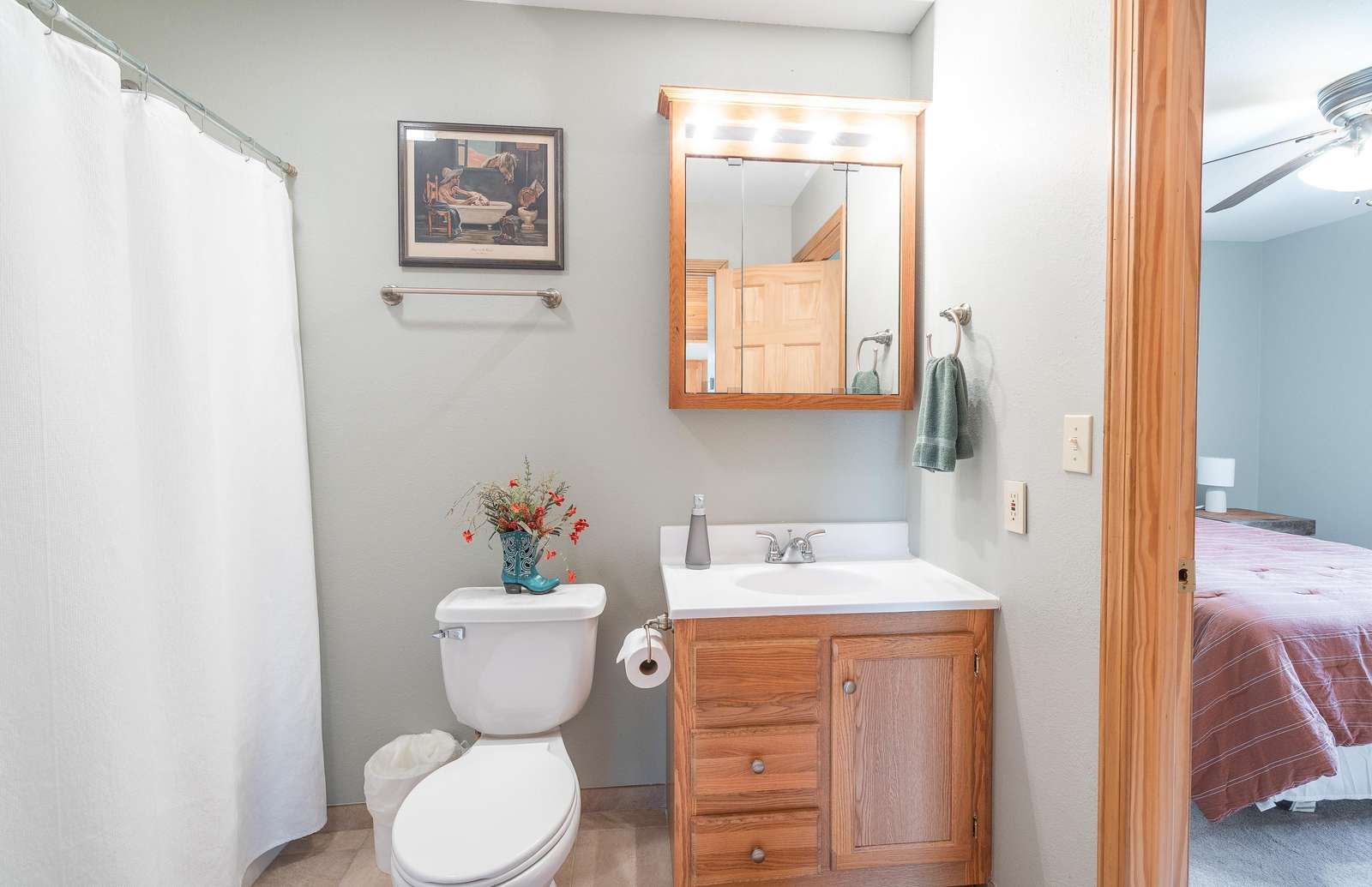 Around the corner lie the two individual bedroom suites, each with a comfortable queen size bed and two bedside tables with reading lamps. These bedrooms each have their own ensuite bathroom, with a tub/shower combo, which is ideal for families or couples traveling together that are looking for just a smidge more privacy.